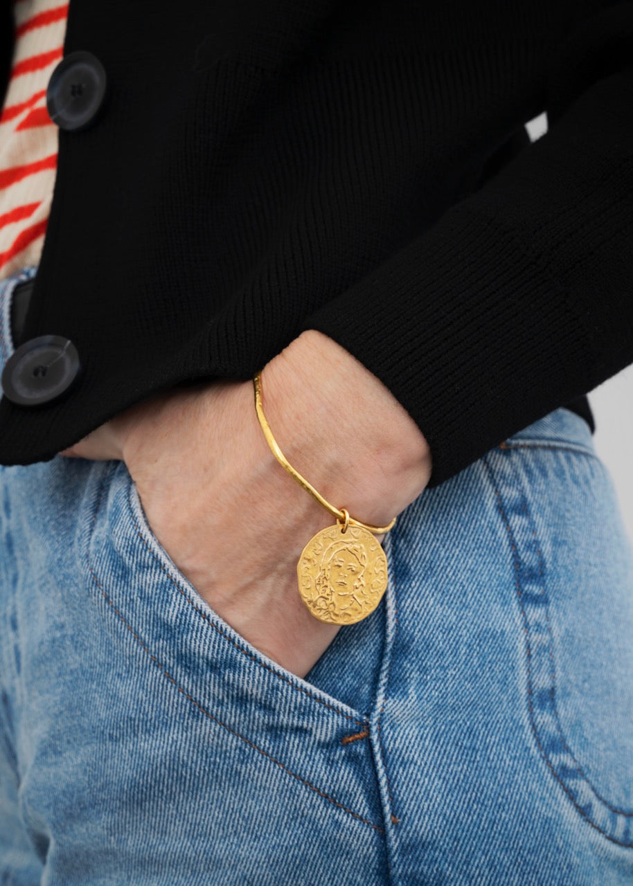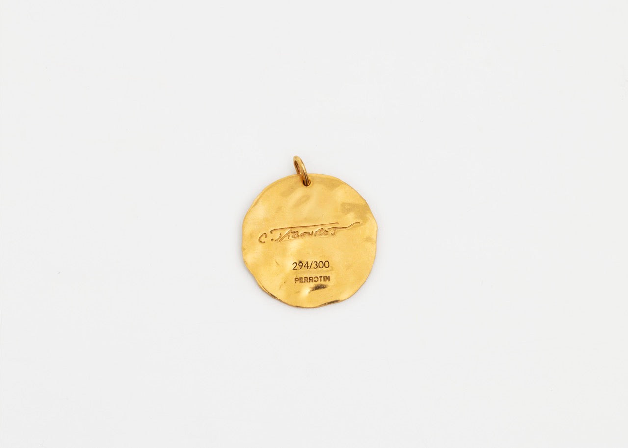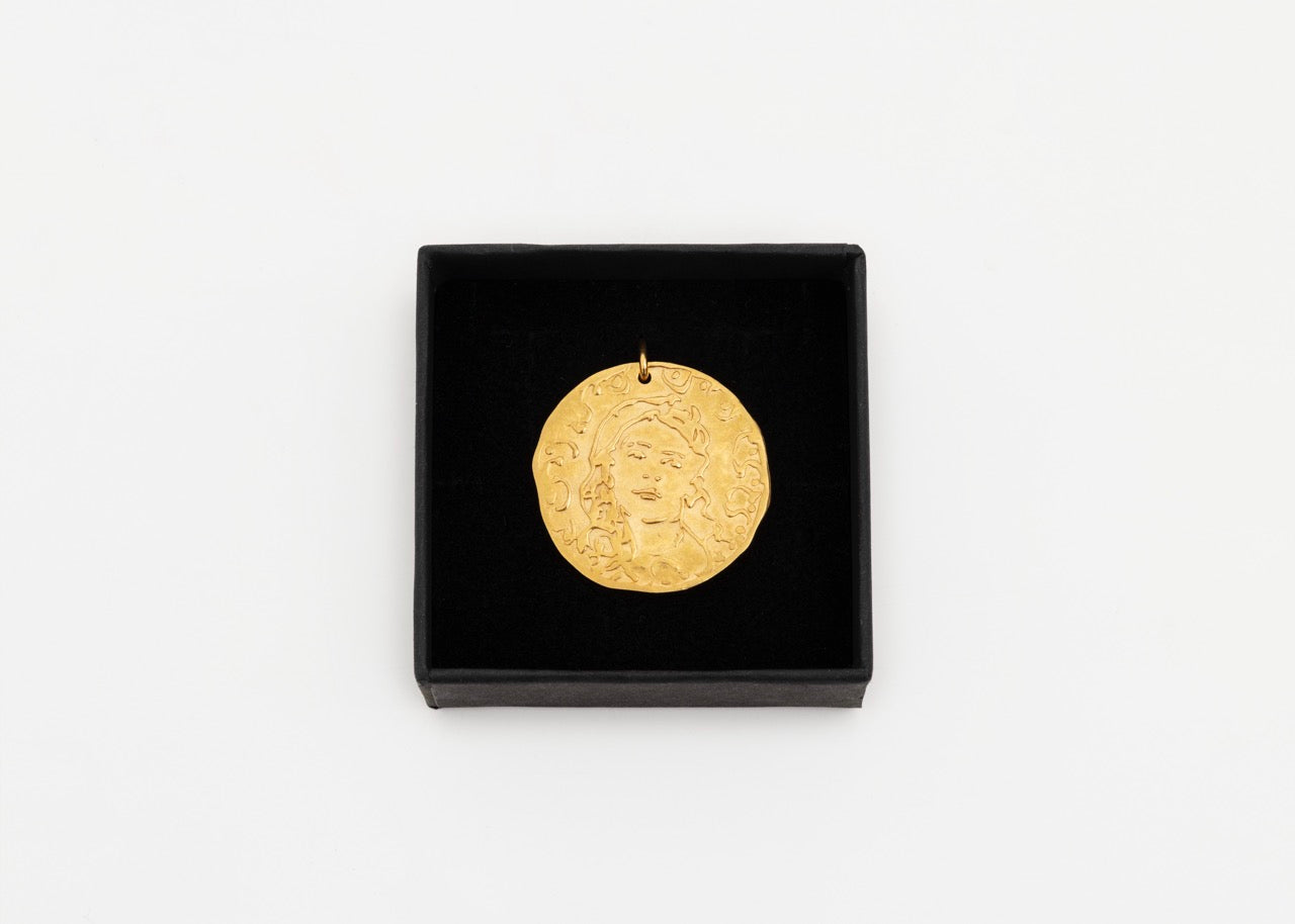 Gold-plated bronze cast with loop, custom branded jewelry box