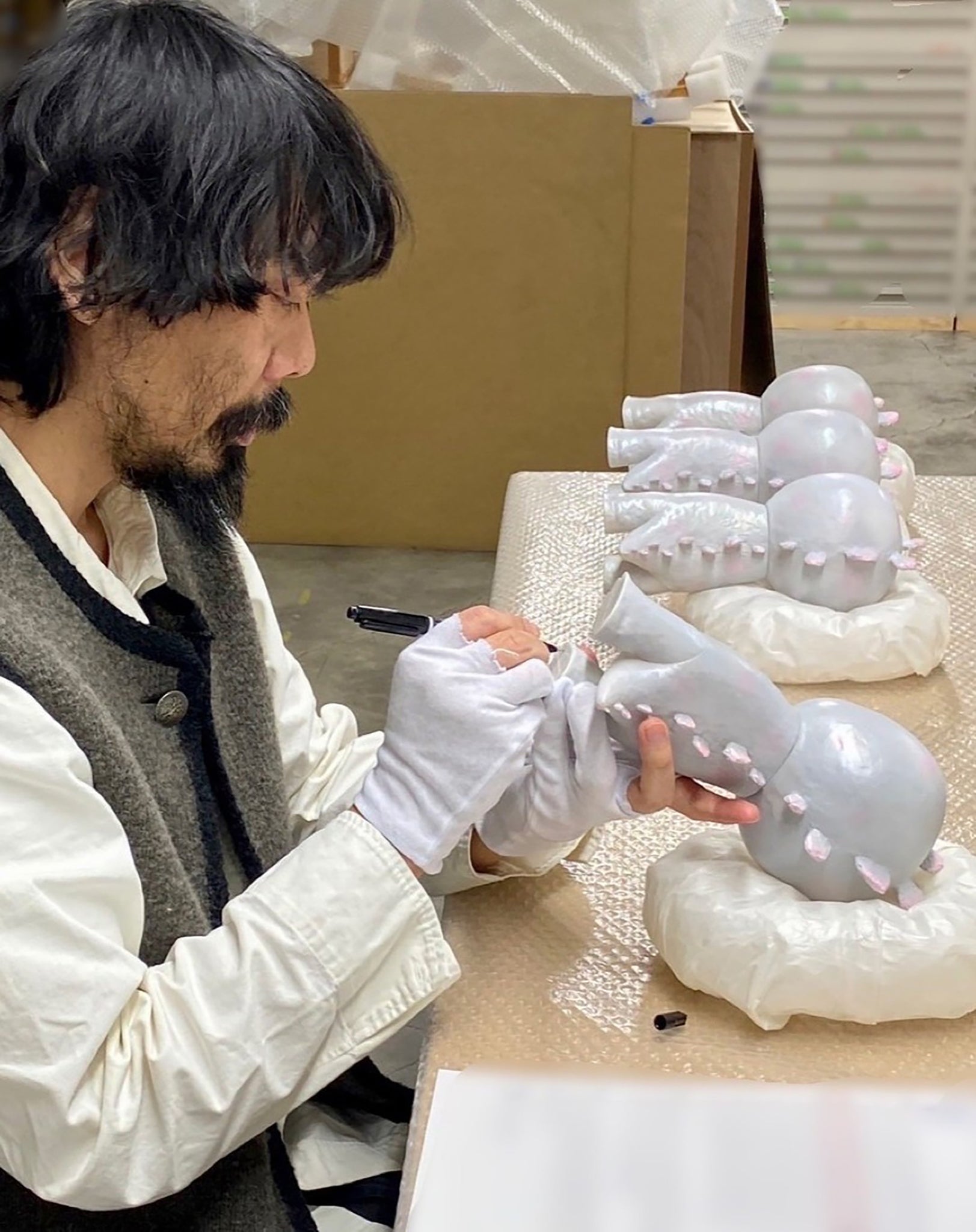 The factory started its operation around May 2022, and we started with the training in molding and coloring. For this edition, instead of using coloring mask, Otani Workshop and Kaikai Kiki staff members carefully and painstakingly colored each piece by hand.